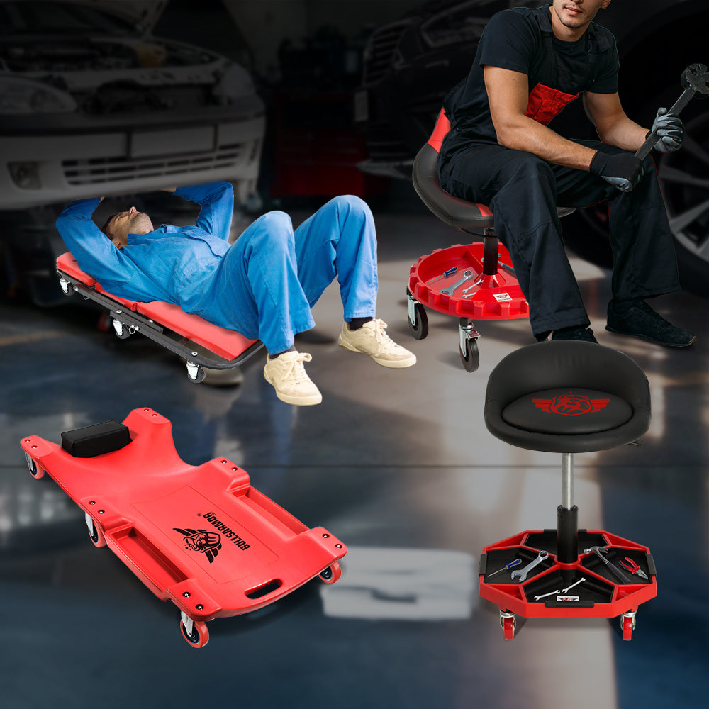 COMBO PACK Mechanic Creeper & Adjustable Mechanic Stool